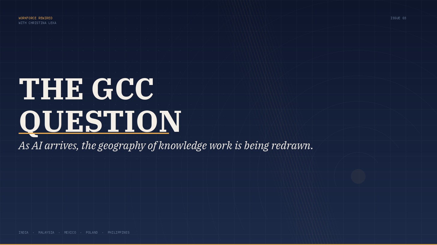 The GCC question (what these centers are actually for, who benefits from them, and whether the model holds) is one of the most consequential and underexplored threads in the AI-and-work conversation. Most of the coverage is either breathlessly optimistic (GCCs are becoming innovation engines!) or quietly alarmed (AI will hollow them out!). The reality, as usual, is more geographically specific and more structurally interesting than either narrative suggests.